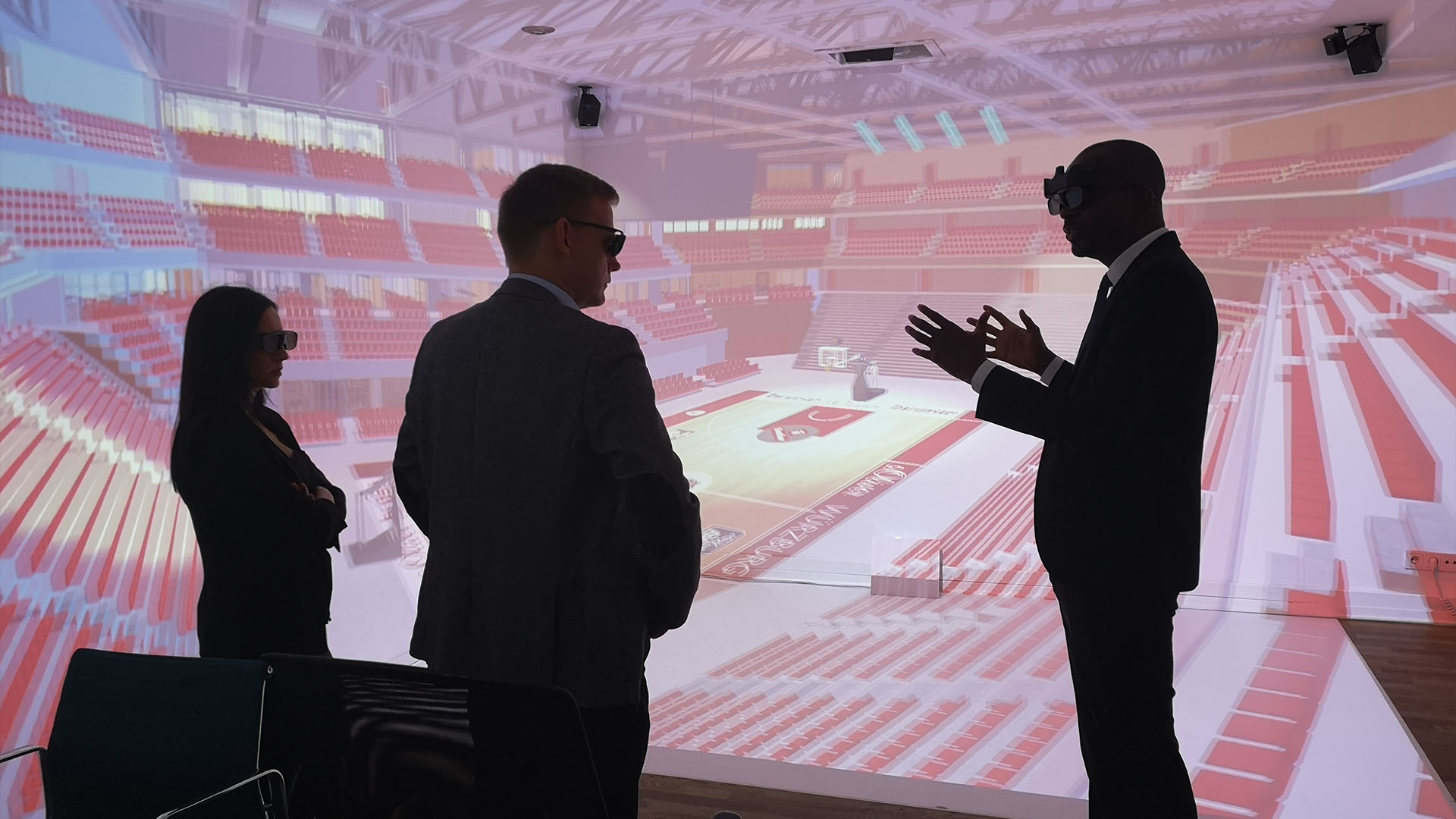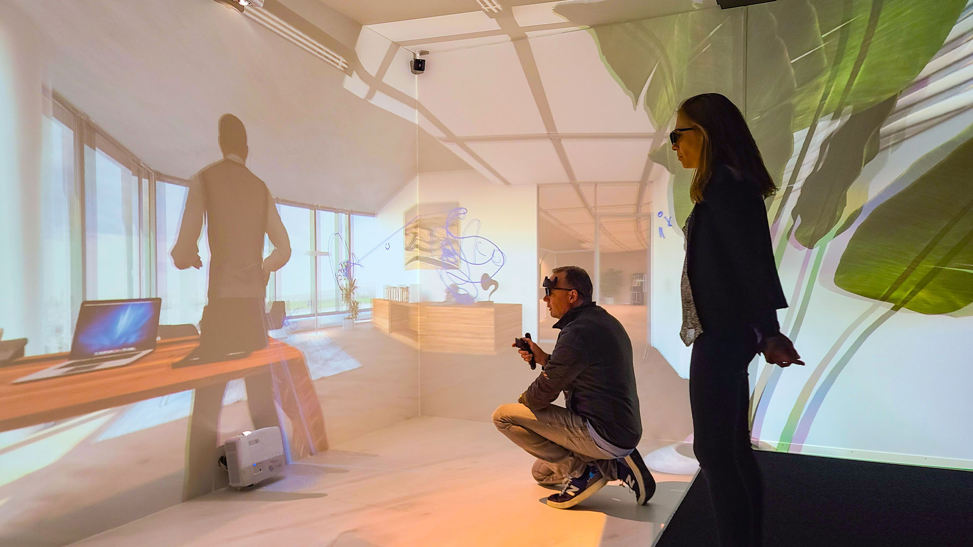 3D-Daten werden direkt auf Wände projiziert. Der virtuelle Raum wird zu einem realen Raum, den Sie gemeinsam betreten und erleben. Keine Bildschirmgrenze, keine Distanz zum Objekt.